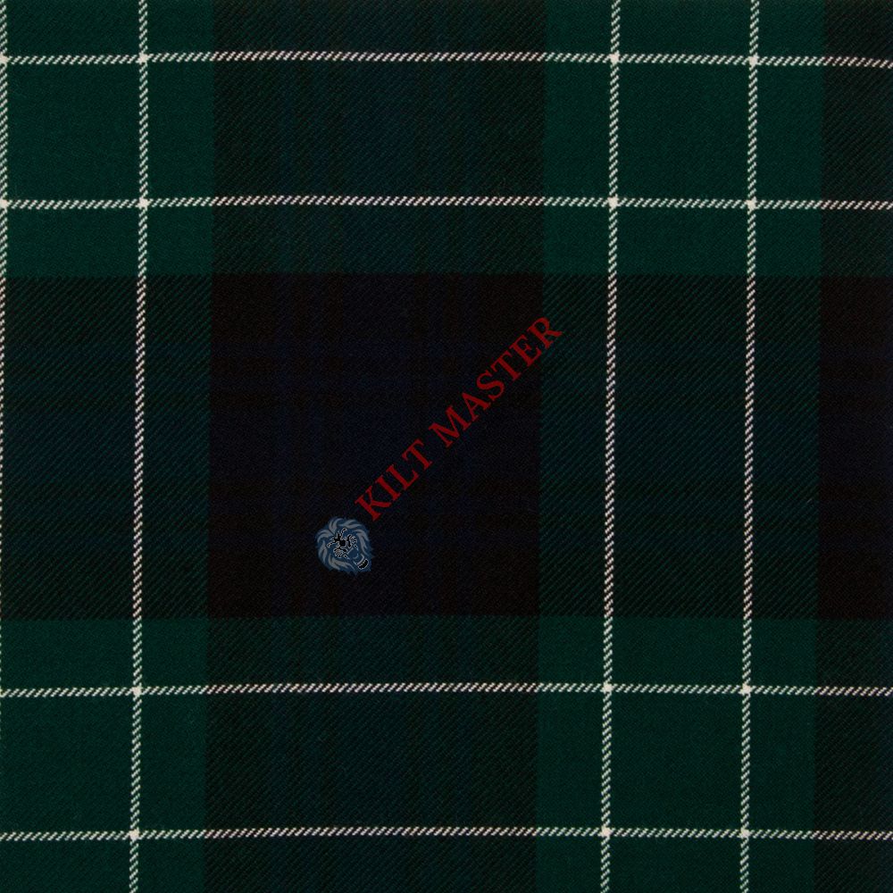 The Abercrombie Modern Tartan features a striking color scheme with bold shades of navy blue, rich green, and deep black, complemented by subtle accents of white and gray. These colors are arranged to create a vibrant, modern look while maintaining a connection to the clan's historical tartan roots.