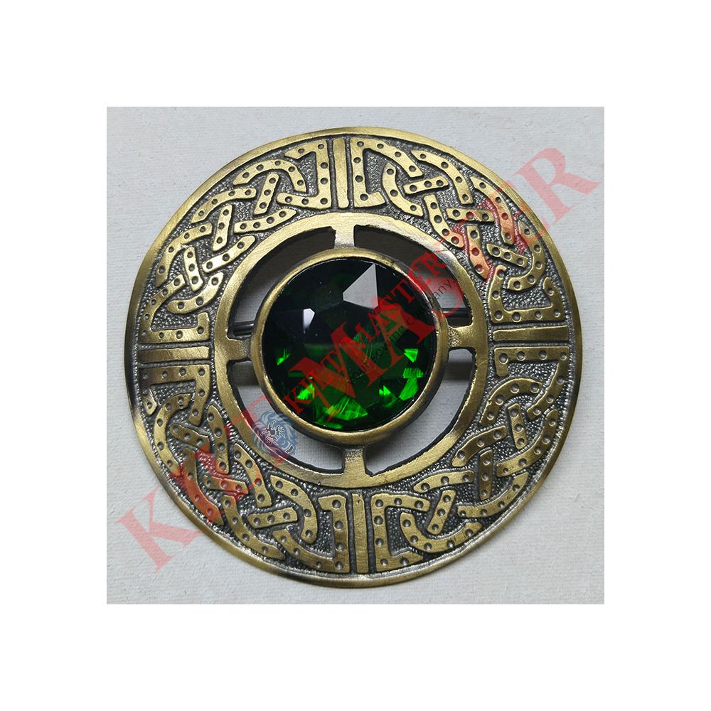 Our Antique Green Stone Scottish Kilt Fly Plaid Brooch is a great pick! It adds a lovely touch to your kilt. The neat green stone in the brooch glows, reminding us of Scotland's wonderful past. It's also very handy as it keeps your fly plaid in place.