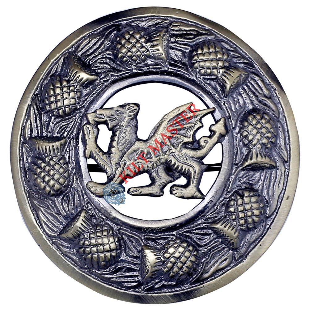 If you're proud of your Welsh roots, this Welsh Dragon Badge Antique Kilt Fly Plaid Brooch is a must-have. With the iconic Welsh Dragon design, this brooch is a sign of power and heritage. It's made of high-quality pewter and is a beautiful piece with an antique finish.