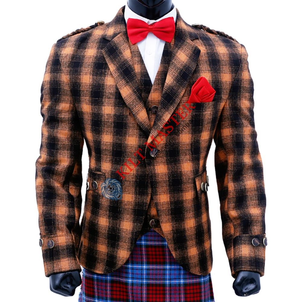 At Kilt Master, we offer a wide range of high-quality Scottish clothing and accessories. Customize your Black and Orange Tweed Argyle Jacket to fit your exact preferences. Simply choose your options, and receive a tailored jacket that’s perfect for you.