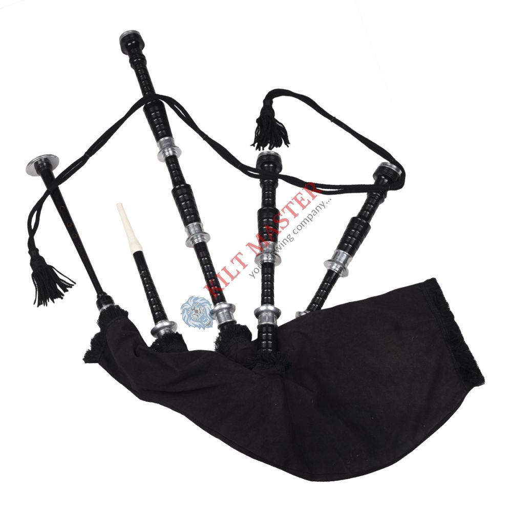 The Black Finish Black Velvet Scottish Bagpipe is a beautiful, easy-to-play instrument. It has a smooth black finish, a soft velvet bag, and gives a strong, clear traditional Scottish sound.