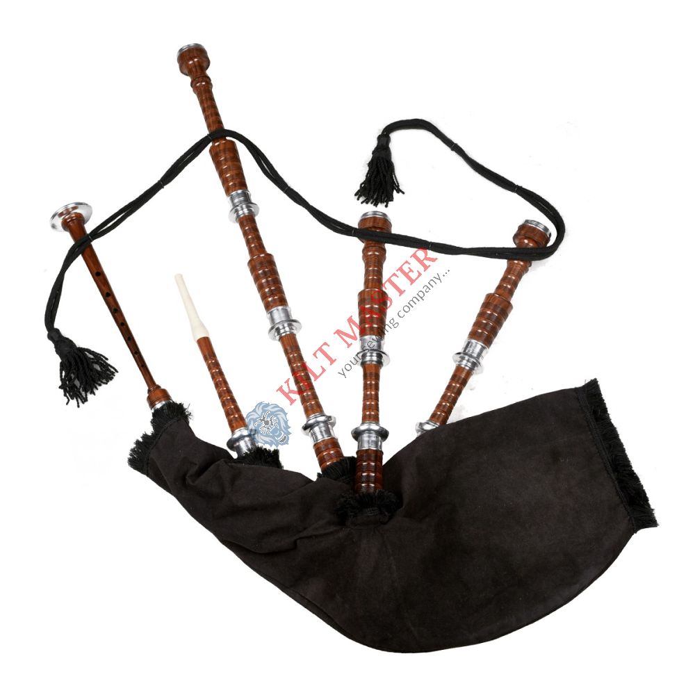 A Black Velvet Natural Finish Scottish Bagpipe is a beautiful musical instrument used in traditional Scottish music. It features a black velvet covering that adds elegance and a natural finish that shows the wood’s true color. This bagpipe is handmade from genuine rosewood, making it durable and with a warm sound. It is designed for both beginners and professional players, offering high quality and classic style. The black velvet cover makes it stand out and adds a refined look to your musical setup. It’s a traditional Scottish instrument that produces rich and powerful sounds, perfect for performances and practice.