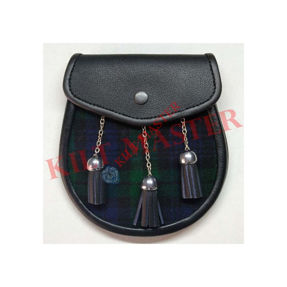The Black Watch Tartan Sporran is crafted with top-notch leather and acrylic wool tartan. Its design is specially for tartan kilts, making it a perfect match for your black tartan kilt. This Black Watch Tartan Sporran upgrades any style of Tartan Kilt, adding grace and flair to any outfit.