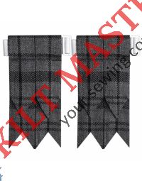 Kilt flashes are pieces of fabric, traditionally cut into V shapes, attached to elastic garters that hold your kilt hose (socks) in place. They are worn under the turned-down top of the hose, with the ends of the flashes showing slightly. Flashes usually come in matching tartans or coordinating solid colors to enhance your Highland outfit.