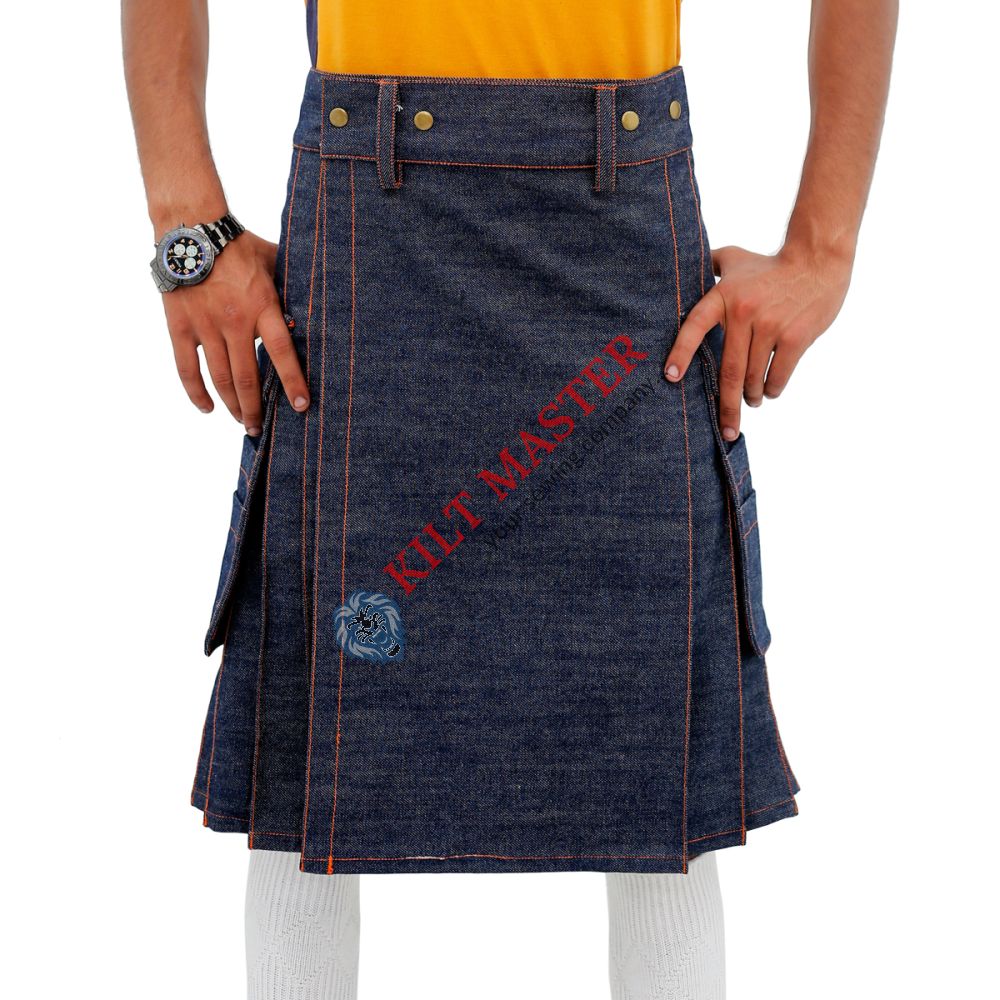 A Blue Denim Utility Kilt is a stylish and functional garment made from durable denim fabric. It is designed for adults and can be customized to fit perfectly. This kilt offers a casual outdoor look and is great for people who want comfort and style. Its utility design means it has pockets and features for carrying small items easily. The blue denim fabric not only looks great but also lasts through regular wear. Whether for everyday use or special outdoor events, this utility kilt provides a comfortable fit and durable fashion for versatile wear.