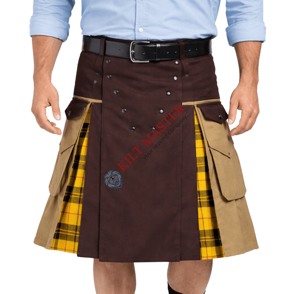 The Brown and Khaki Fashion Hybrid Utility Kilt blends modern style with rugged function. Made for comfort and durability, it’s perfect for casual wear, outdoor activities, and bold everyday fashion.