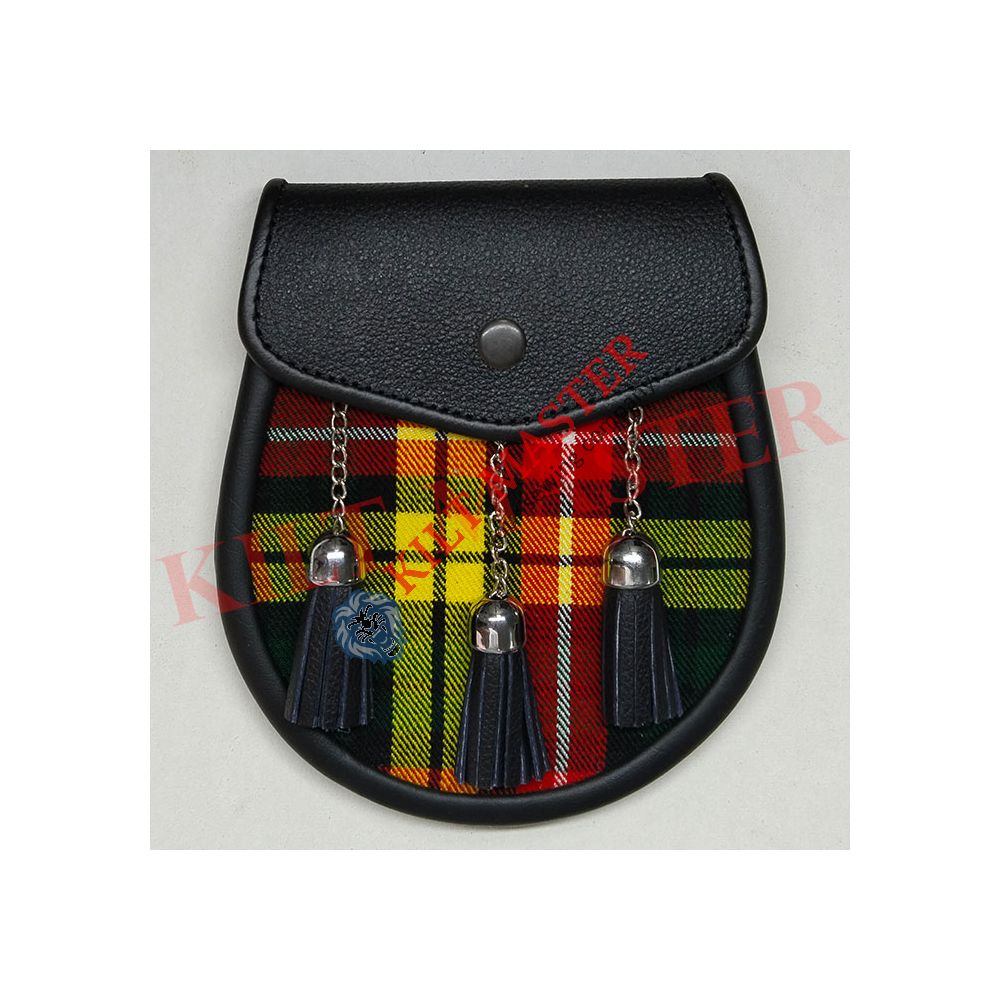 Enhance your kilt's look with the Buchanan Tartan Sporran. It's made of top-notch cowhide leather and acrylic wool tartan to ensure durability. This sporran is specially designed to go with a Buchanan Tartan Kilt, providing a matching and complete Scottish look.