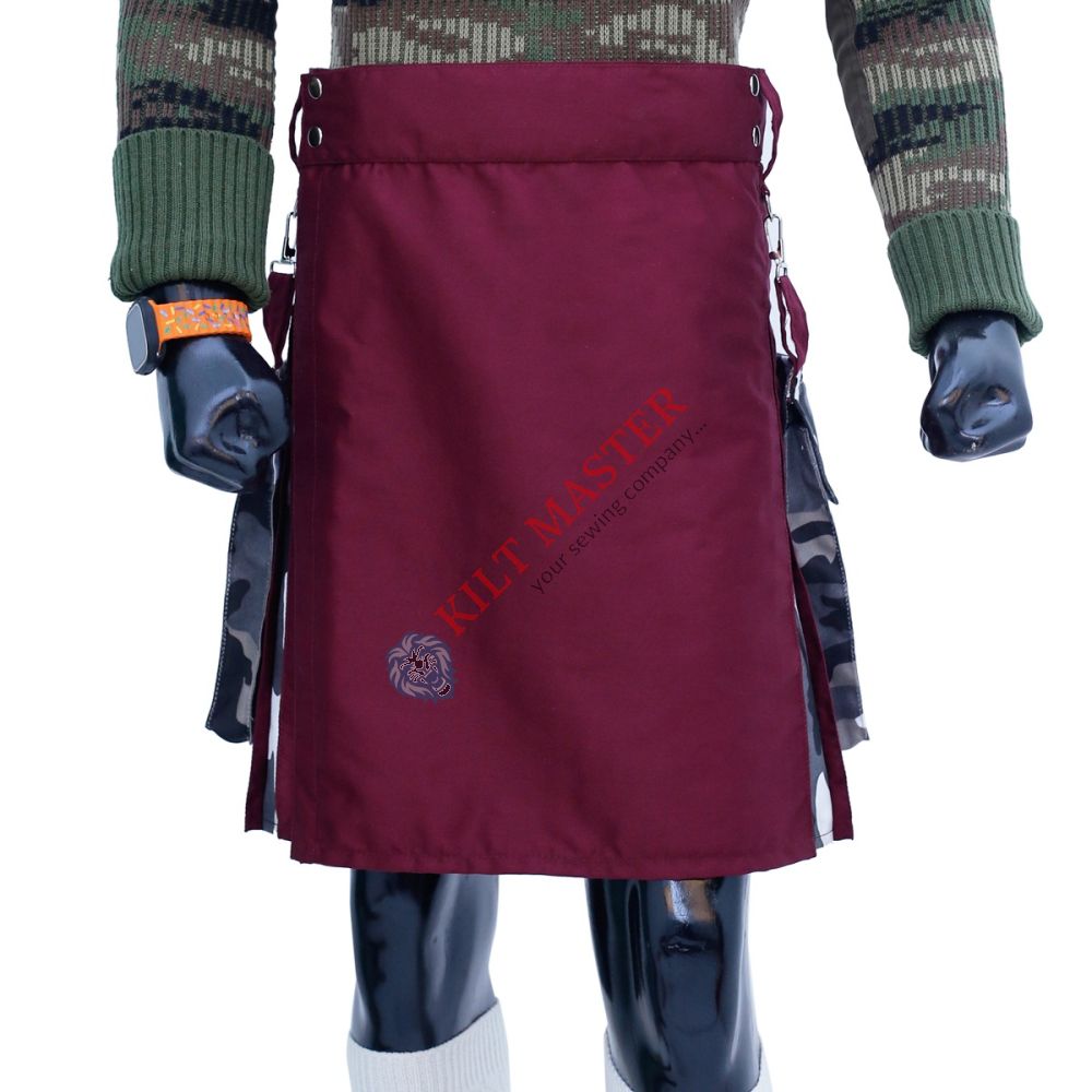 1. What makes the Burgundy and Camouflage Hybrid Kilt special?
