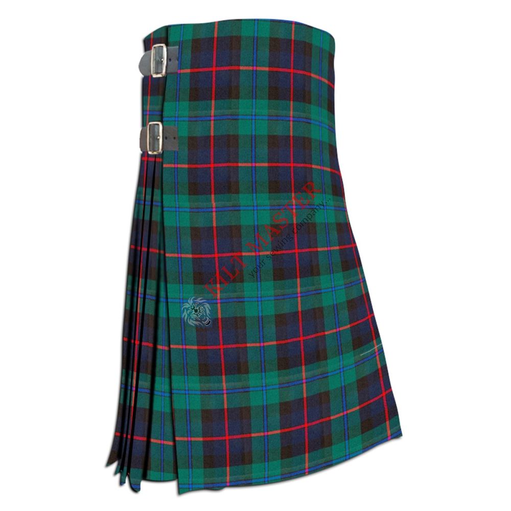 The Campbell of Cawdor Modern Tartan Kilt features a stylish modern Scottish design that honors Scottish heritage. Made to Measure for a perfect fit, it is crafted using high-quality tartan fabric in blue and green shades. This unisex kilt is versatile, suitable for formal events or casual wear, and highlights clan pride for those with Campbell of Cawdor ancestry. Its design blends tradition with modern style, making it a timeless addition to any wardrobe and a proud expression of clan honor clothing.