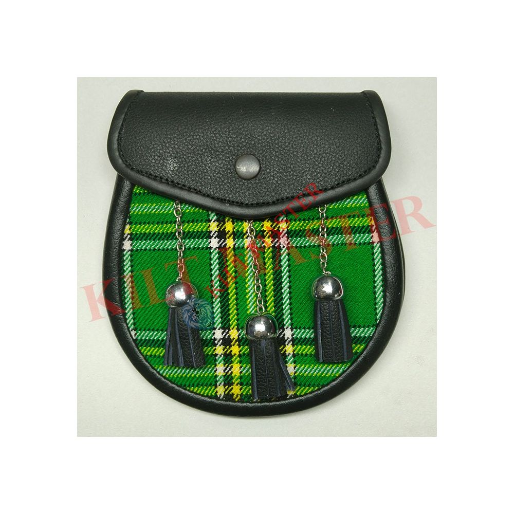 This Scottish Irish National Tartan Sporran blends acrylic wool and fine leather. A perfect match with any kilt, this tartan sporran adds tradition, style, and functionality to your outfit.