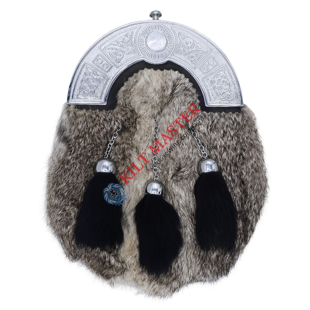 This sporran captures the traditional look with its grey rabbit fur, chrome cantle, and black tassels. It is a genuine Highland Wear piece made for adults, designed with care and attention to detail. The natural fur and sturdy materials give authenticity to Scottish accessories. Whether for formal Highland events or cultural festivals, this sporran highlights Scottish heritage. Its high-quality craftsmanship and timeless style make it a reliable and attractive part of any Scottish outfit collection.