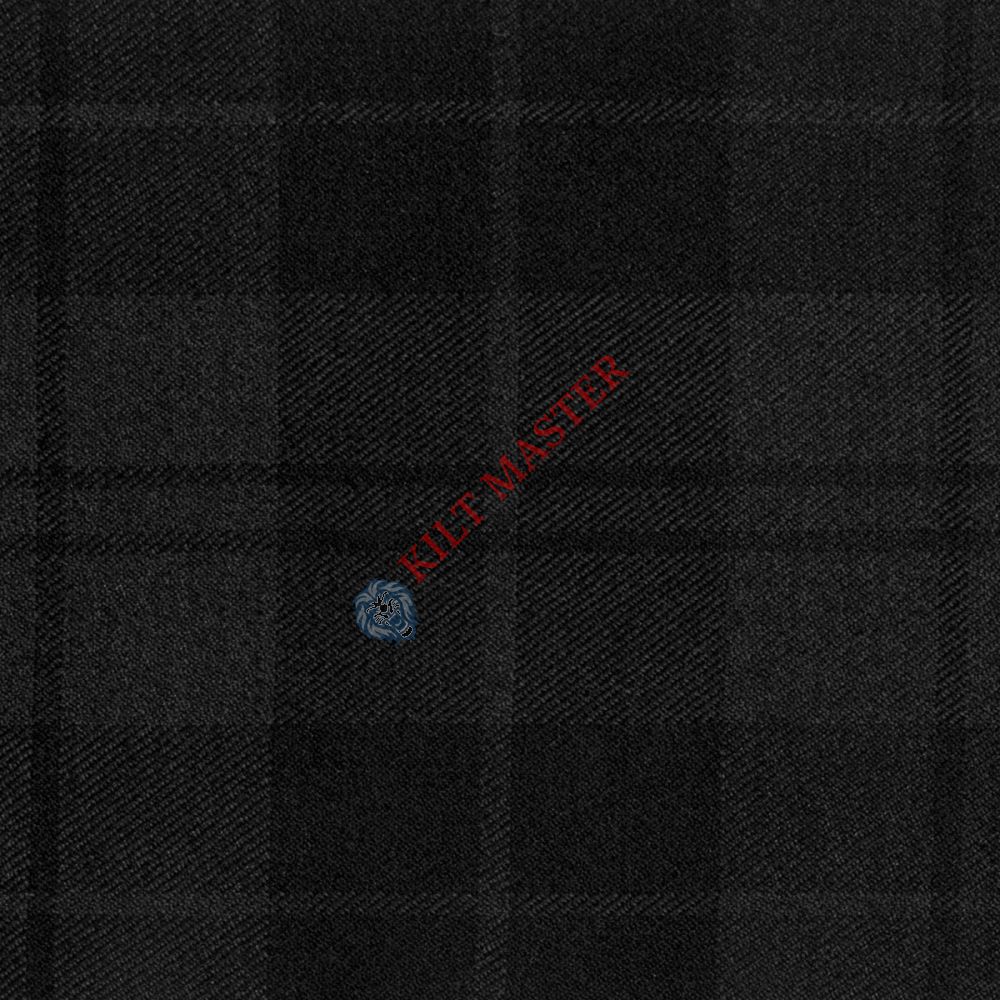 The Dark Douglas Black Tartan Kilt presents a sophisticated and bold interpretation of Scottish tartan design. Featuring a predominantly black base with deep red and grey accents, this tartan creates a striking pattern of intersecting lines and squares. The dark hues evoke a sense of elegance and strength, making it a versatile choice for various occasions.