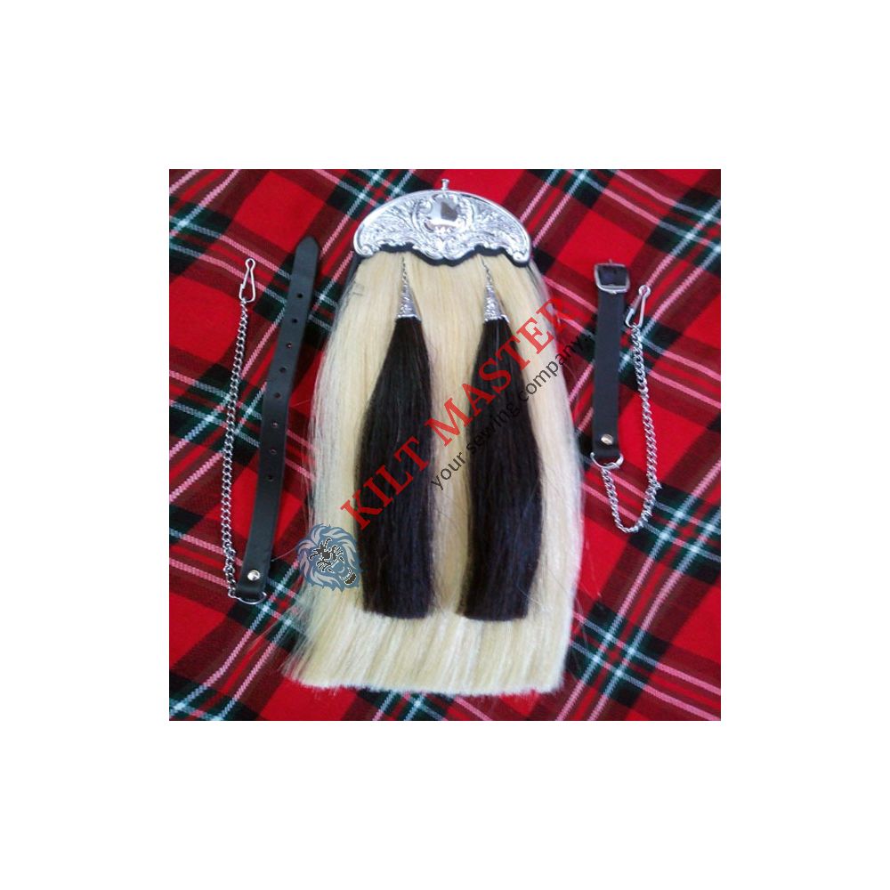 You can choose from a white horse hair Celtic cantle sporran, a black and white horse hair sporran, or a combination of both colors. The white and black horse hair sporran offers a classic look that matches many outfits. The white horse hair Celtic cantle sporran provides a bright, elegant appearance. Each style is unique, with the horse hair carefully selected to highlight its natural beauty. These options let you pick a sporran that best fits your personal taste or traditional style. All of these choices are available for sale and ready to be part of your wardrobe.