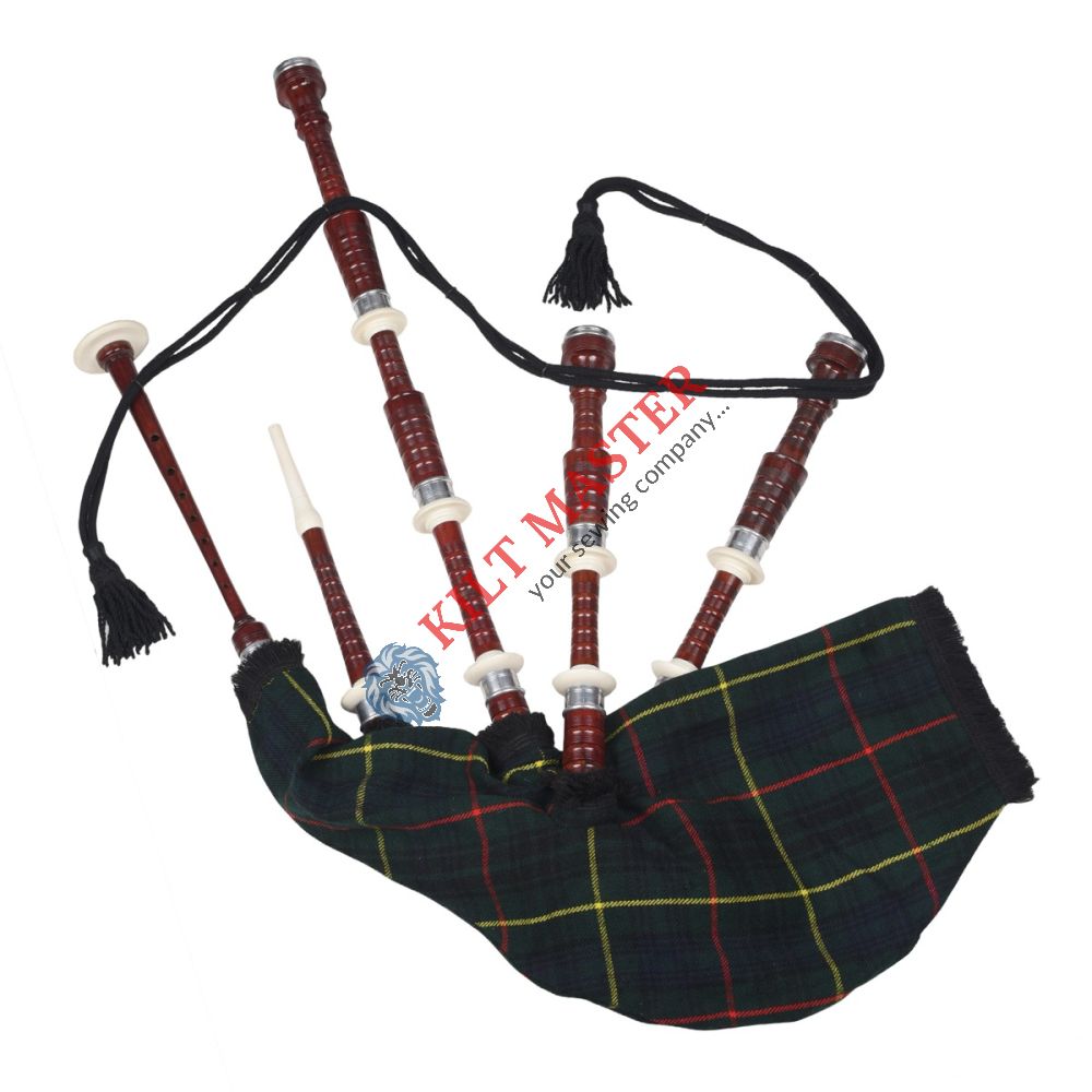 The Rosewood Hunting Stewart Tartan Bagpipe is a finely crafted instrument made from genuine rosewood. Its elegant reddish finish adds a warm, traditional Scottish appeal. Designed for smooth and steady play, it features imitation ivory mounts, a comfortable plastic mouthpiece, and a classic Hunting Stewart Tartan cover. With rich tone quality and a traditional look, it is an excellent choice for both beginners and experienced players.