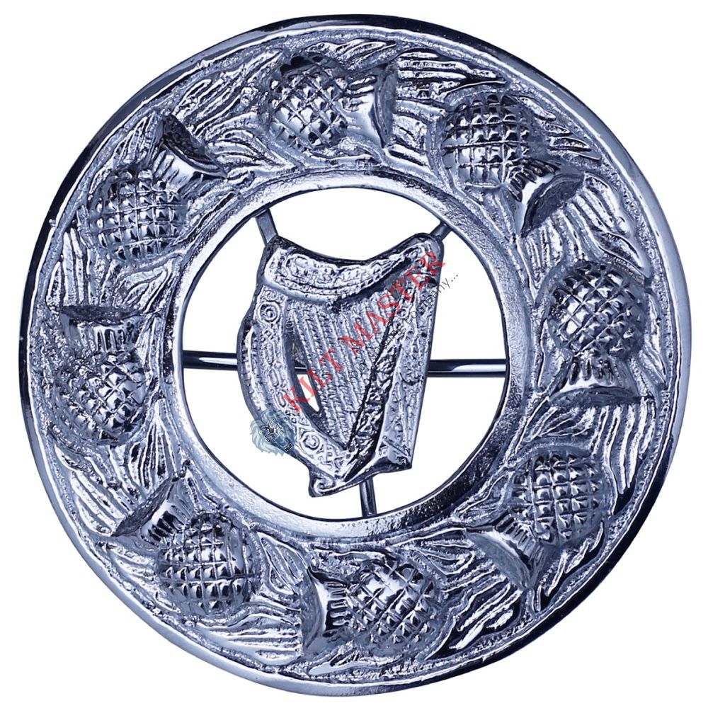 Irish Harp Kilt Fly Plaid Brooch - Chrome Finish
