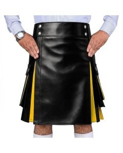- Black and Yellow Leather Utility Kilt - Modern Hybrid Warrior Kilt with Pocket for MenSpecial Price $169.00 Regular Price $249.00