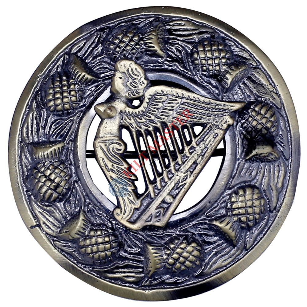 Add a touch of elegance to your kilt with the Lady Harp Badge Antique Kilt Fly Plaid Brooch. This exquisite brooch features a classic harp design, embodying rich Scottish heritage. Crafted from high-quality antique pewter, it offers durability and timeless appeal. Its intricate details make it a standout accessory for any kilt. Perfect for both formal and casual events, this brooch enhances your look with tradition and style.