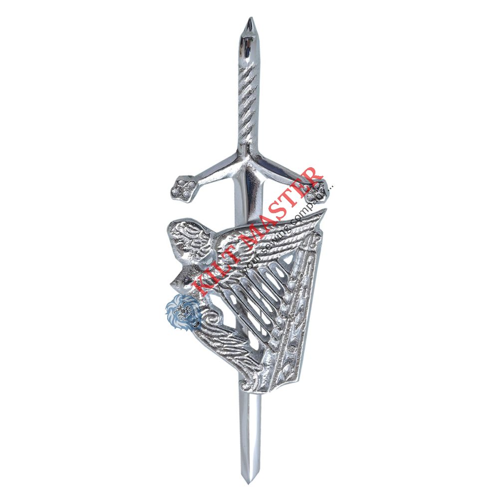The Lady Harp Kilt Pin - Scottish Traditional Accessory not only serves a practical purpose but also makes a style statement. Its detailed harp design immediately catches the eye. Plus, the robust pewter and chrome finish ensure it retains its shine and elegance over time.