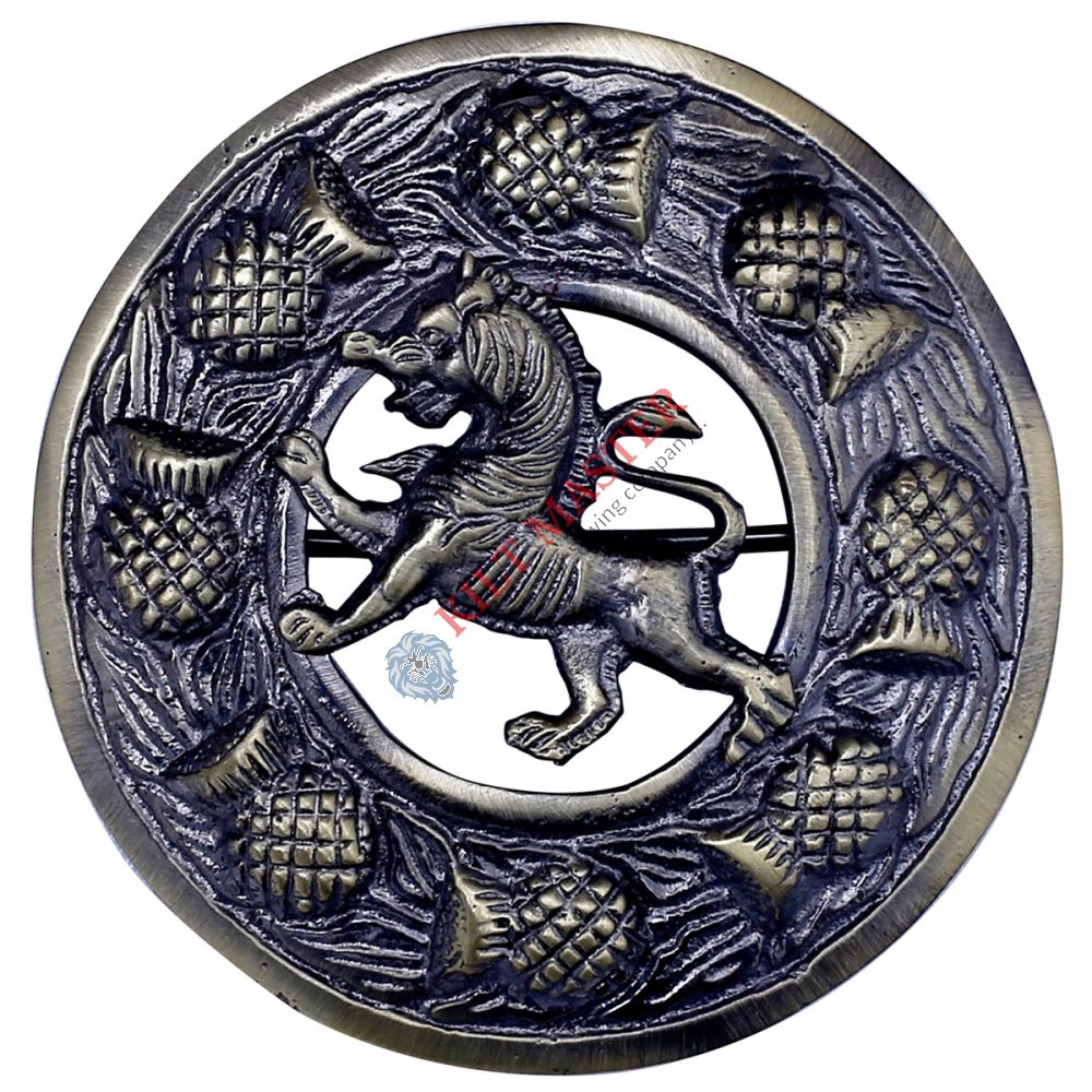 The Lion Rampant Badge Antique Kilt Fly Plaid Brooch is a special accessory for Scottish dress. It features a traditional Scottish Lion Rampant design, symbolizing Scottish heritage. This antique Scottish brooch is used to pin kilt fly plaid fabrics securely in place. Made for adults, it is a unisex piece that can be customized to fit perfectly. Its design combines history and style, making it a great addition to any Scottish outfit or costume. The brooch is also known as a traditional kilt pin, helping to keep your kilt neat and stylish.