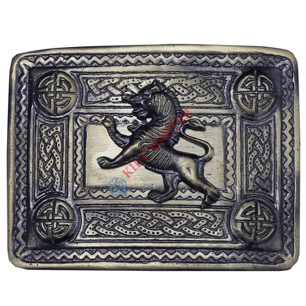This antique finish kilt buckle features a detailed Lion Rampant badge, a symbol of Scottish heritage. The Celtic buckle design makes it a perfect Highland kilt accessory. It's made to measure, so it fits adults perfectly. Whether you want a Scottish belt buckle or a unique accessory, this antique kilt buckle adds history and style to your outfit. Its sturdy construction ensures it lasts long and looks great with your traditional attire.