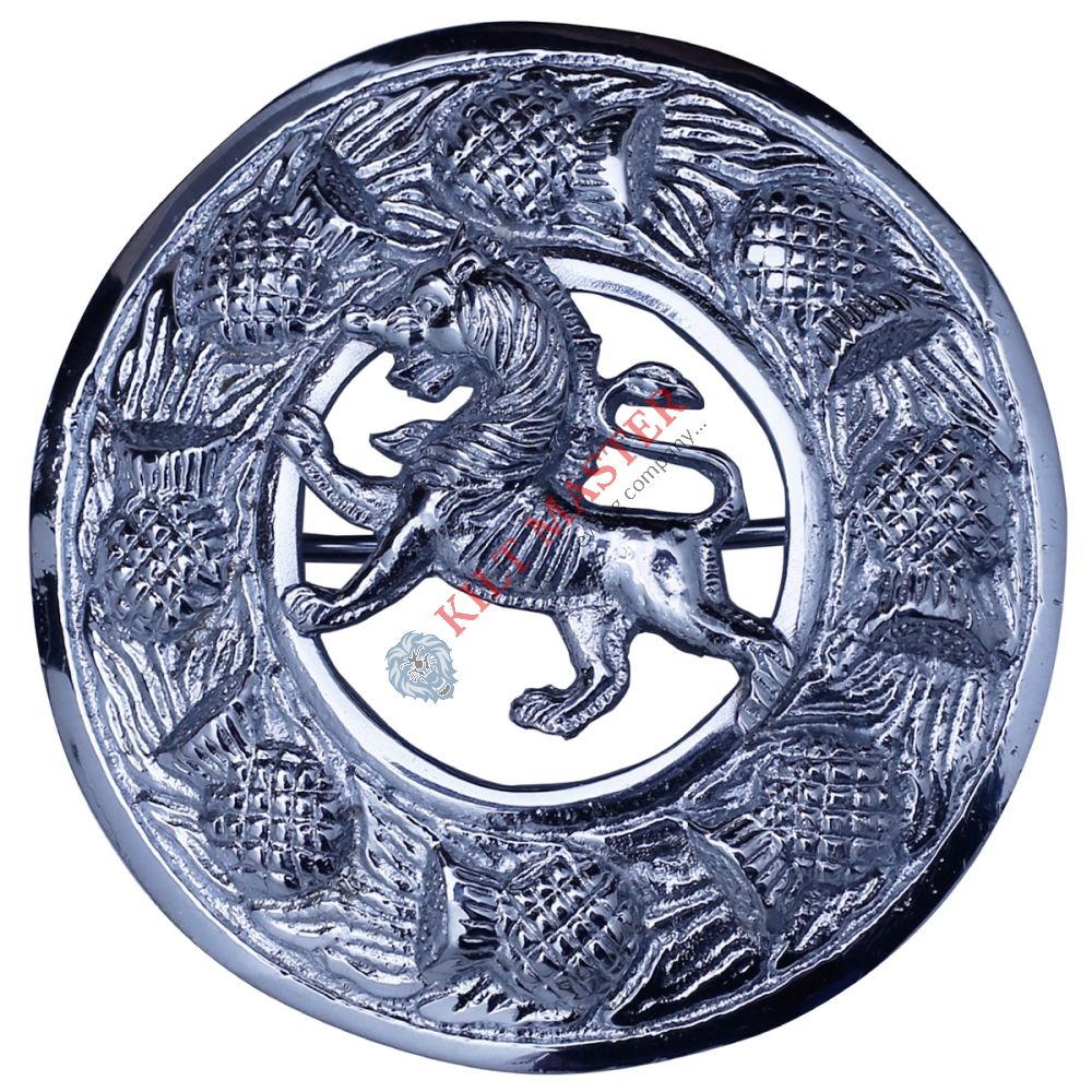 Our Lion Rampant Kilt Fly Plaid Brooch - Chrome Finish isn't just a fashion accessory but also a symbol of heritage. It showcases a design known for its ties to Scottish roots, making it an instant hit among those with a taste for designs with deeper meanings.
