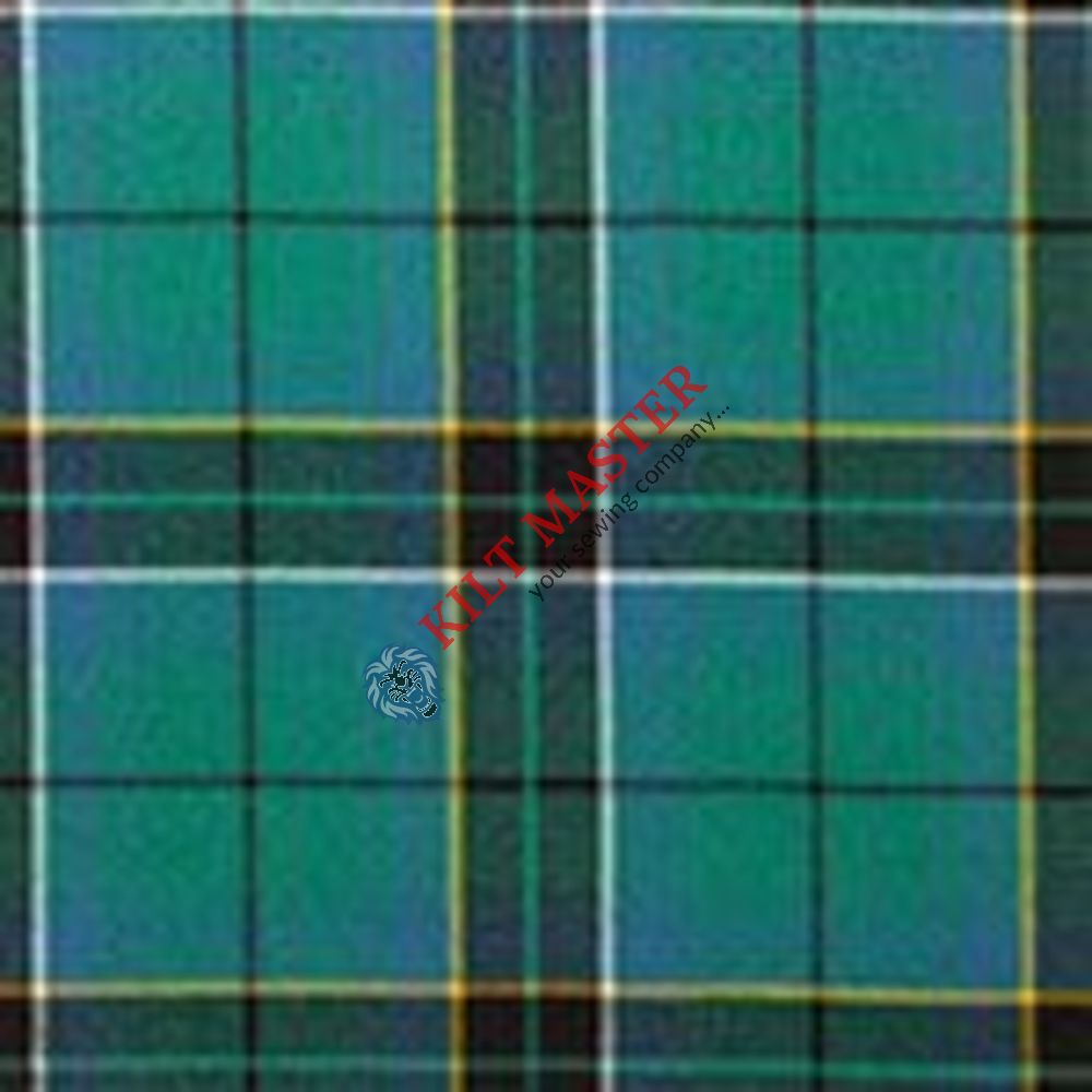 This ancient tartan features a vibrant pattern of green, blue, and red, with wide, alternating stripes that create a striking and harmonious appearance. The use of these specific colors is deeply rooted in the clan's history, symbolizing their identity and pride.