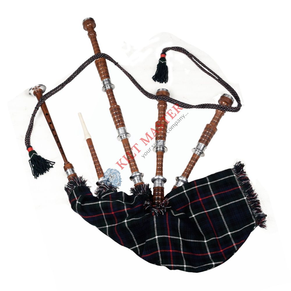 The MacKenzie Modern Tartan Natural Finish Scottish Bagpipe is a high-quality musical instrument. It features a authentic Mackenzie Scottish Bagpipe design with a natural wood finish. The bagpipe comes with a genuine rosewood bagpipe body, ensuring durability and a rich sound. It also includes a stylish Mackenzie Tartan Cover to protect and add a touch of tradition. This professional bagpipe is perfect for those who want to enjoy Highland music and improve their playing skills. Its natural finish gives it an elegant look that stands out on stage or during practice.