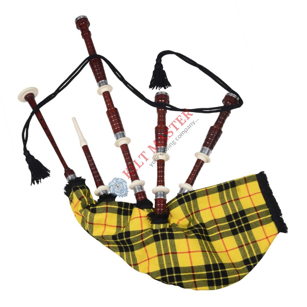 The Rosewood MacLeod of Lewis Tartan Bagpipe is a beautifully handcrafted instrument made from high quality genuine rosewood. Its smooth raddish finish highlights the elegant grain of the wood, giving it a rich and traditional Scottish appearance. The bold MacLeod of Lewis tartan cover adds a classic touch, while imitation ivory mounts and a comfortable plastic mouthpiece ensure easy playability for both beginners and experienced pipers.