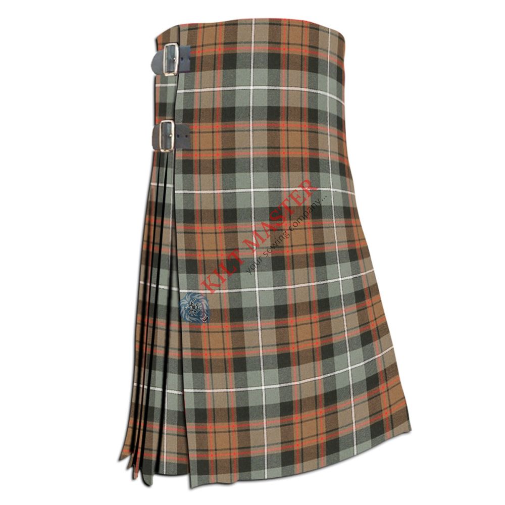 The MacRae Hunting Weathered Tartan Kilt brings tradition and style together. It is made from soft and strong acrylic wool that feels comfortable and lasts long. With real leather straps and shiny chrome buckles, it gives a smart and clean look. The waistband is adjustable, so it fits well and feels good all day.