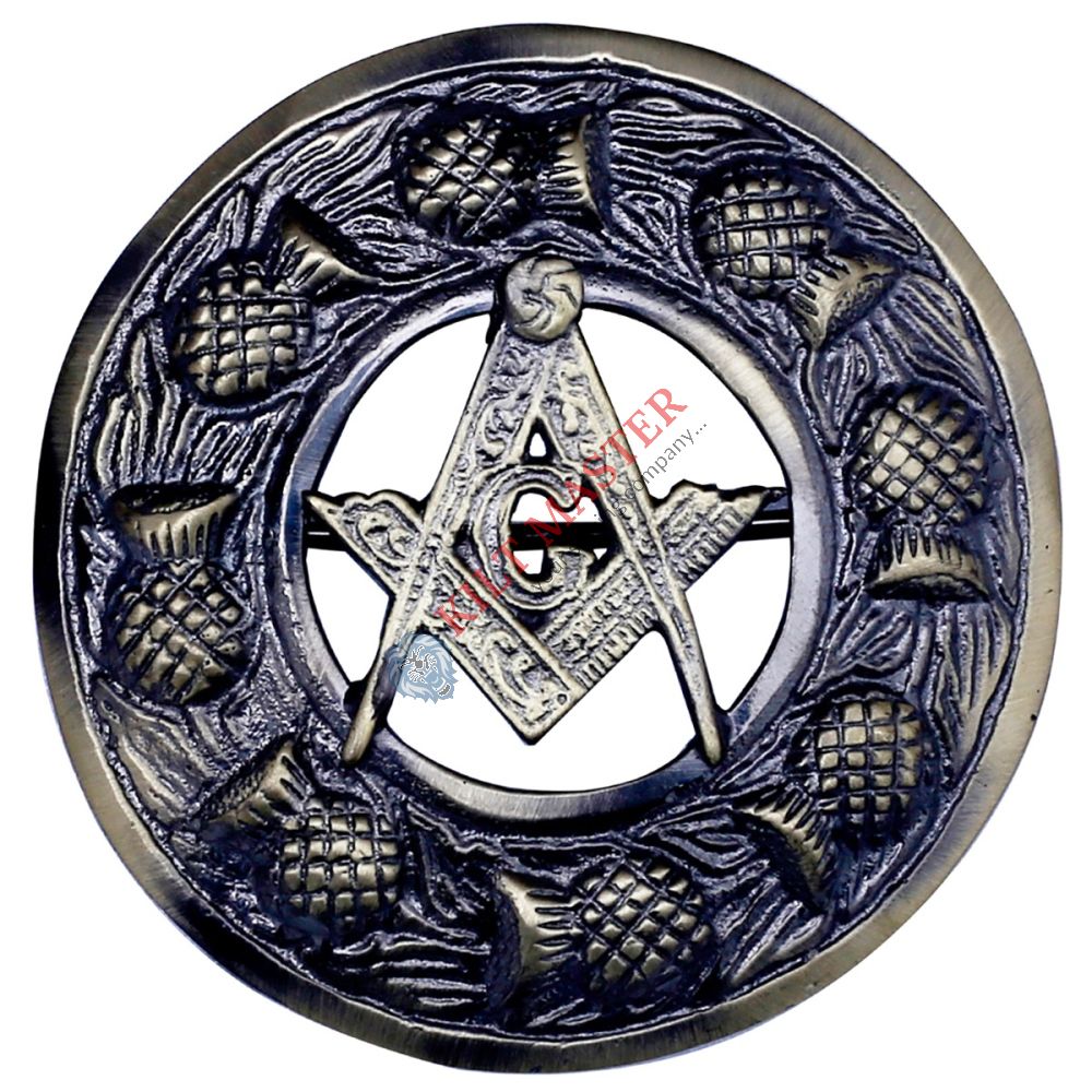 Adorn your kilt with our Antique Masonic Badge Kilt Fly Plaid Brooch. Its vintage design, durable build, and eye-catching details add style to traditional attire.