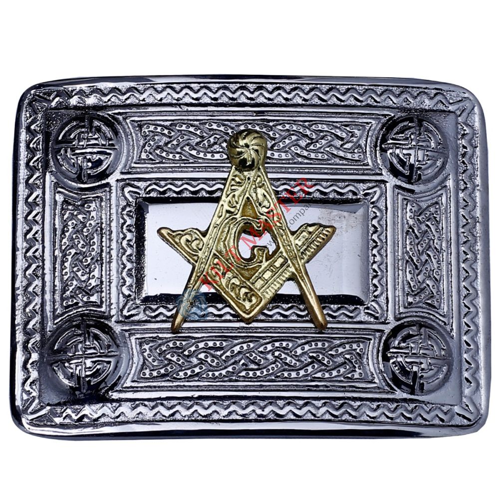Material: Pewter Finish: Chrome and Gold Design: Golden Masonic Badge Type: Kilt Belt Buckle Size: 9cm x 7cm