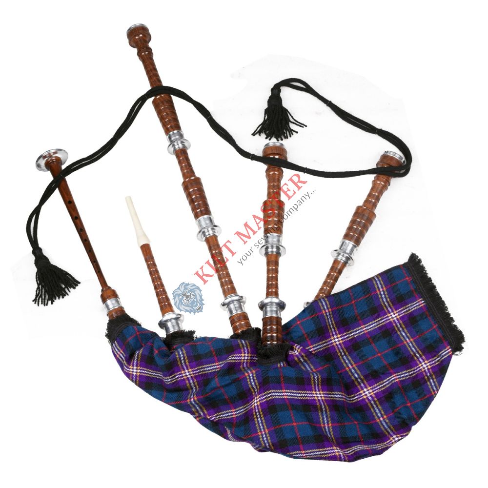 The Masonic Tartan Scottish Bagpipe is made from real rosewood with a natural finish. It has ivory style mounts and a comfortable mouthpiece, giving a traditional Scottish look and sound.