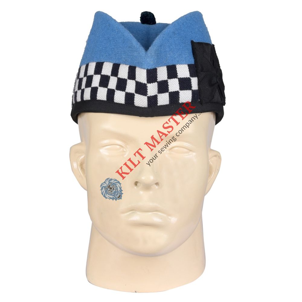 The Scotland Glengarry Hat is a stylish and traditional piece of Scottish headwear, designed to bring a classic yet modern look to your outfit. Made from high-quality wool, this hat offers comfort, durability, and a premium feel. Its sleek shape and elegant finish make it perfect for weddings, parades, cultural events, or everyday wear. The sky blue color with detailed dicing adds a unique and eye catching touch, while the traditional design reflects true Scottish heritage.