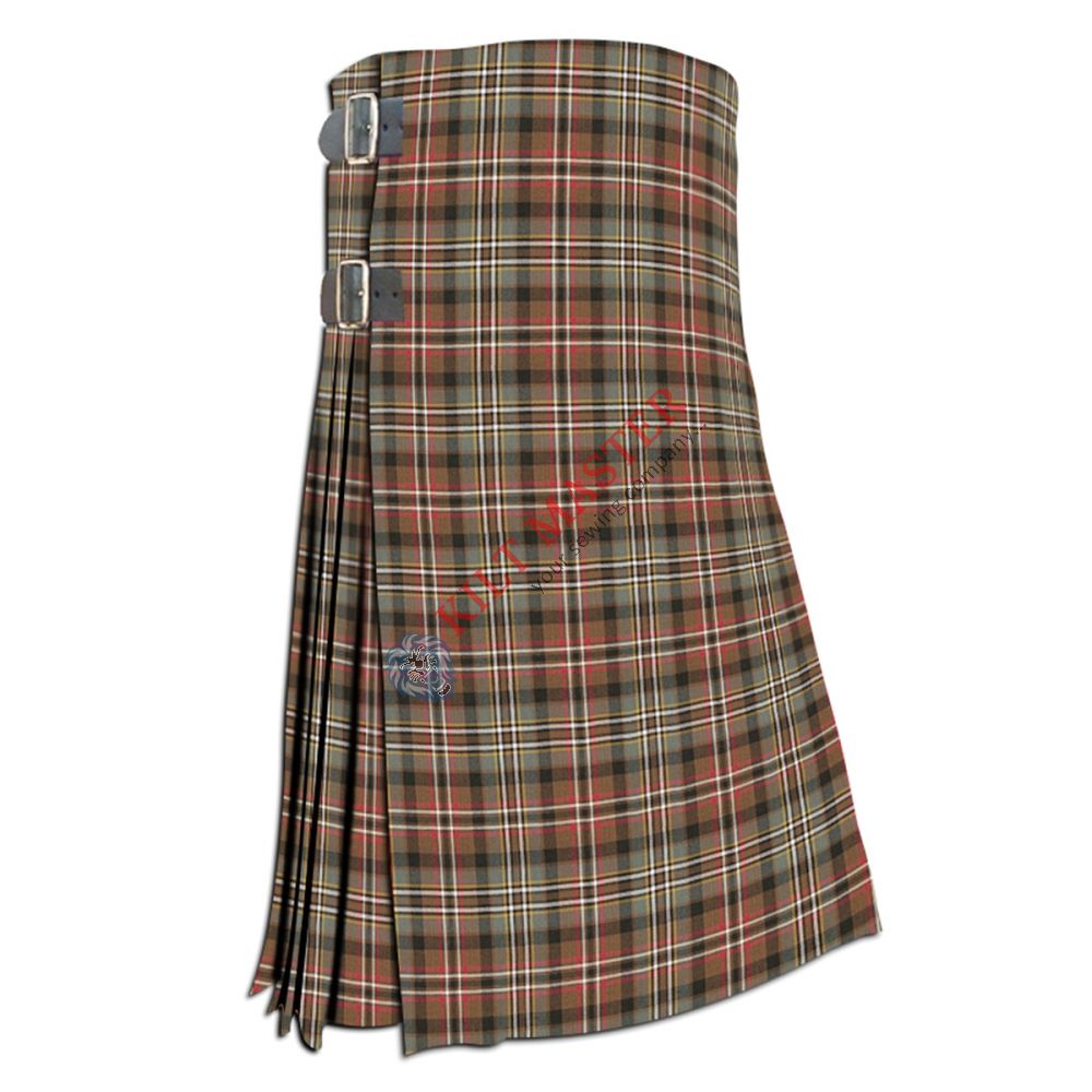 The Weathered Tartan Kilt has a unique aged look that gives it a vintage, worn-in charm. Unlike bright, new-looking kilts, this one features a weathered pattern that looks like it has been used and loved over time. It's part of our heritage kilts collection, which emphasizes tradition and history. The weathered style makes it special and adds character to your outfit. It also maintains the same quality and craftsmanship as a classic kilt, but with a distinctive and stylish touch that many people find appealing.