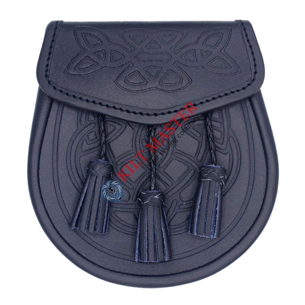 The Brown Embossed Leather Sporranis crafted from high-quality genuine leather, showcasing exceptional durability and a rich, elegant appearance. This full dress day leather sporran is meticulously designed to complement party and event attire, adding a touch of sophistication to any ensemble. The intricate Celtic knot embossing on the sporran exemplifies the blend of artistry and tradition, making it suitable for all types of fashion and Tartan Kilts, enhancing the grace and overall look of kilt-wearing.