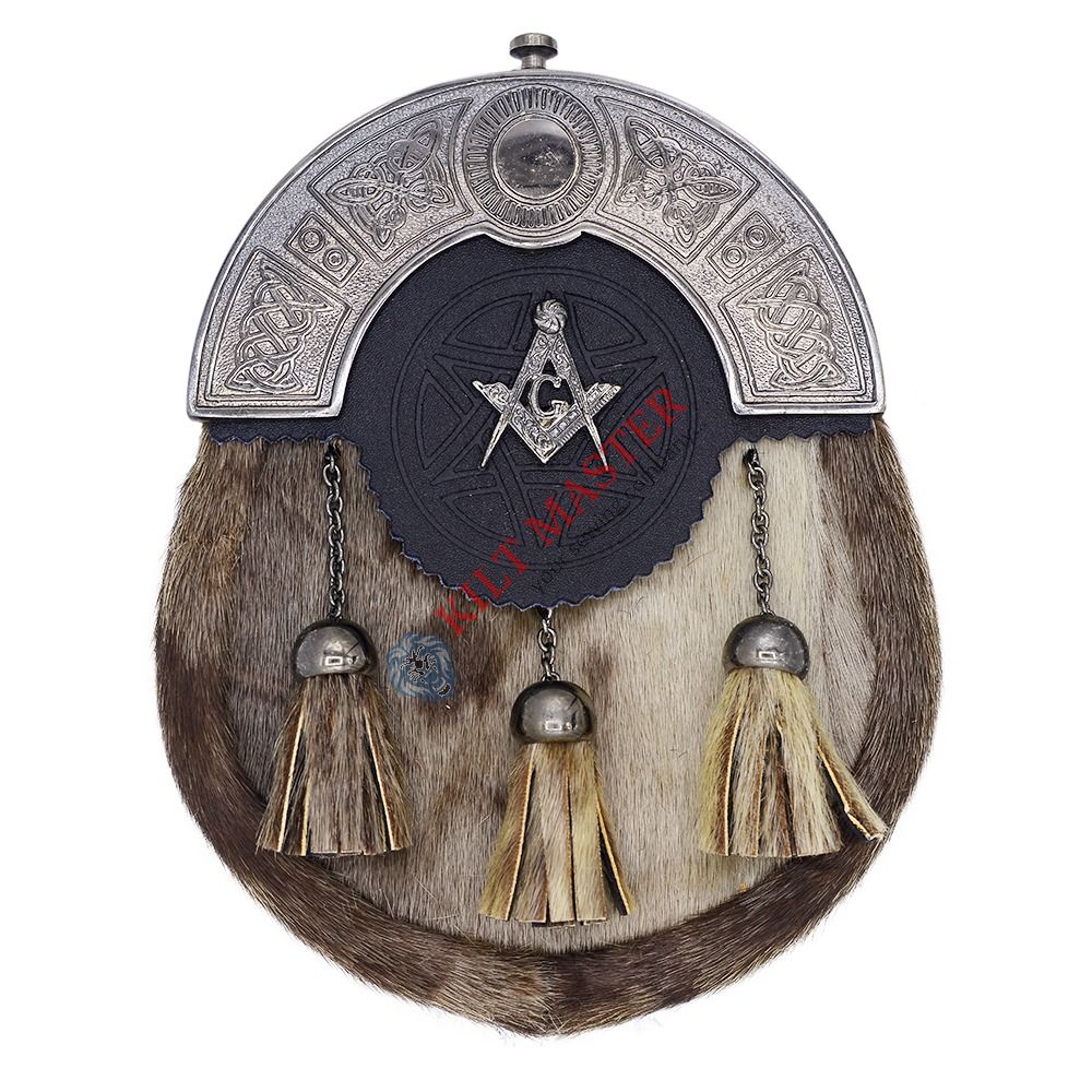 Scottish Formal Seal Skin Leather Kilt Sporran with Antique Masonic Badge