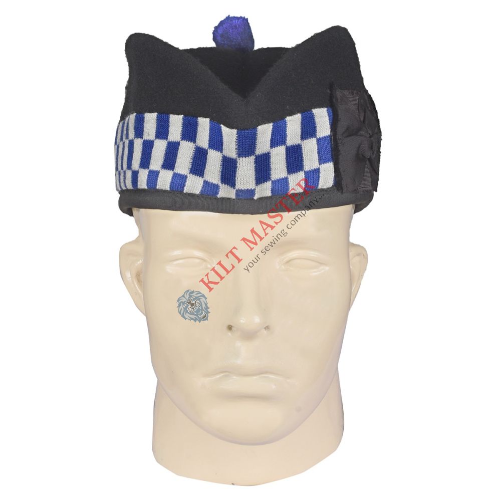 The Scottish Hat Glengarry is a traditional Scottish accessory that adds a touch of heritage to any outfit. Made for adults, this unisex hat offers a unique style with its distinct shape. It is available in a made-to-measure size, ensuring a comfortable fit for everyone. The standout feature of this hat is the classic white and blue dicing pattern, which gives it an authentic look. The glengarry hat with white and blue dicing is perfect for special occasions, cultural events, or adding a Scottish touch to your daily style. It is crafted with attention to detail, making it both a fashionable and reliable accessory for anyone who loves Scottish tradition. Whether worn for a costume or as a fashionable statement, this hat truly stands out.