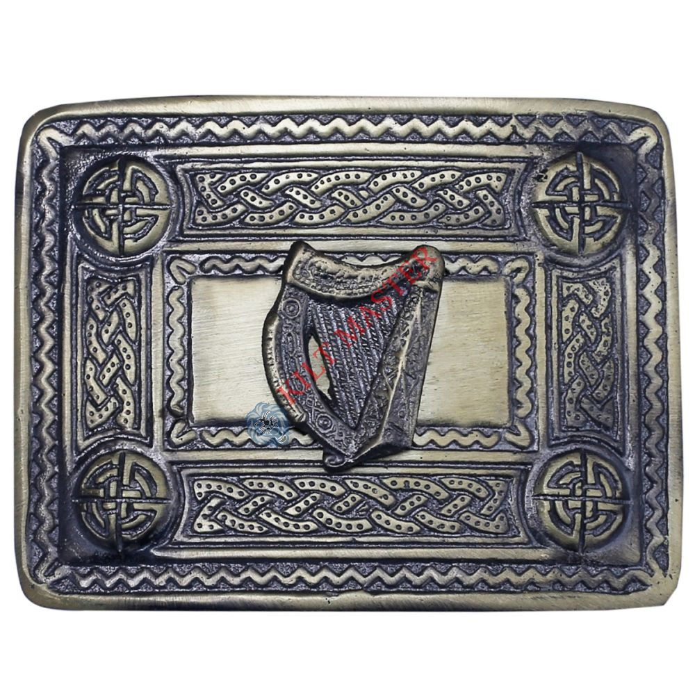 Material: Pewter Finish: Antique Design: Harp Badge Style: Kilt Belt Buckle Size: 9cm x 7cm