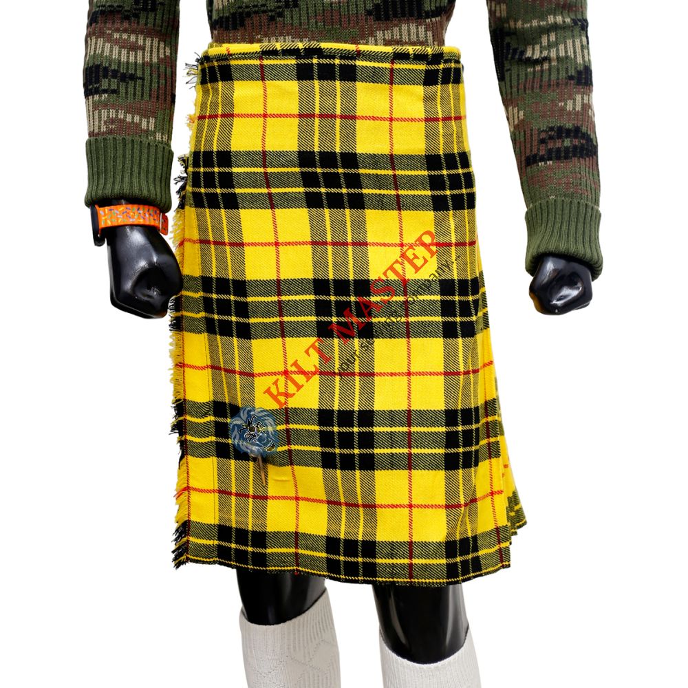 The Scottish McLeod of Lewis Tartan Kilt is a distinguished choice among Scots of all ages, perfect for both casual gatherings and formal events. This kilt showcases the vibrant and historic McLeod of Lewis tartan, characterized by its bright yellow, black, and red pattern, which symbolizes the rich heritage of the McLeod clan.