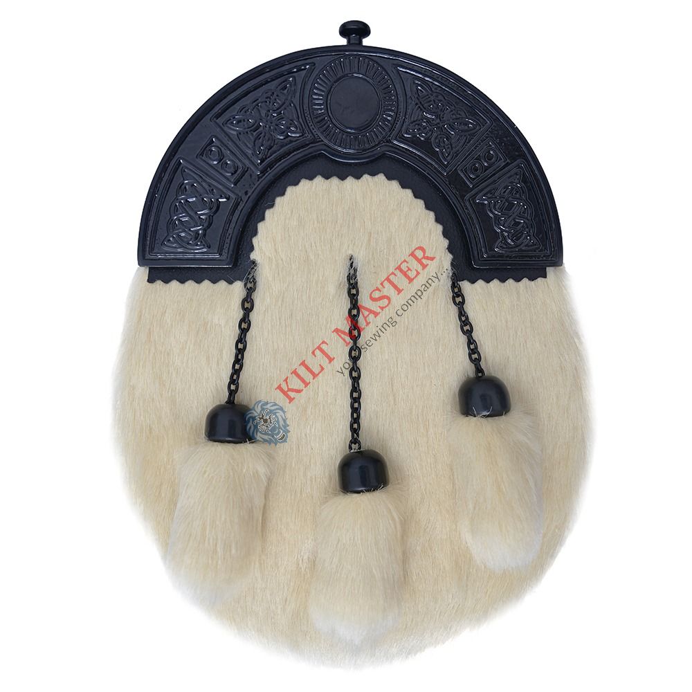 Scottish White Rabbit Fur Sporran with Chrome Celtic Arch