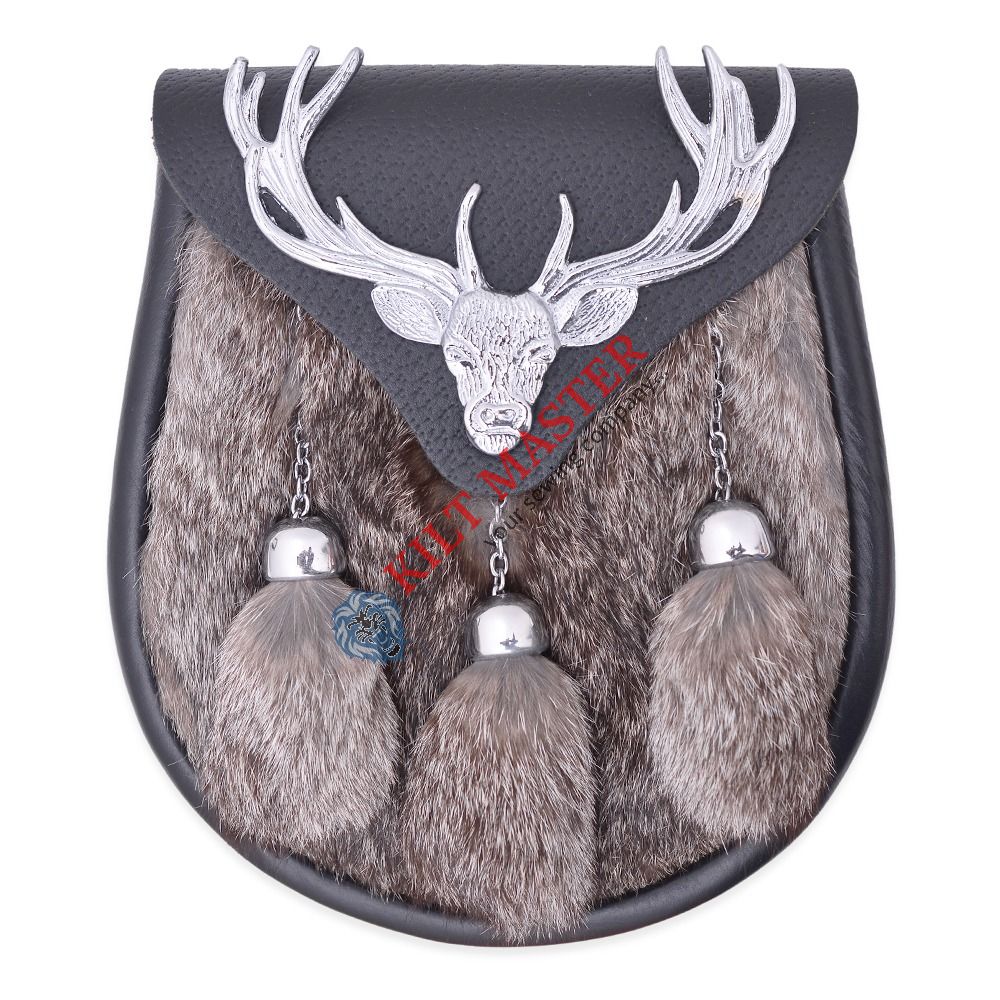 Material: Genuine Leather and Seal Skin Color: Black Style: Semi Dress Type: Scottish/Highland Tassels: 3 Fastening: Inside Button Attachment: Leather Straps and Chain Hardware: Silver Chrome Size: Adult and Adjustable Kilt Master is your ultimate destination for Scottish clothing and accessories, offering an extensive range of high-quality, custom-made outfits. Our kilt sporrans are essential for completing any kilt ensemble.