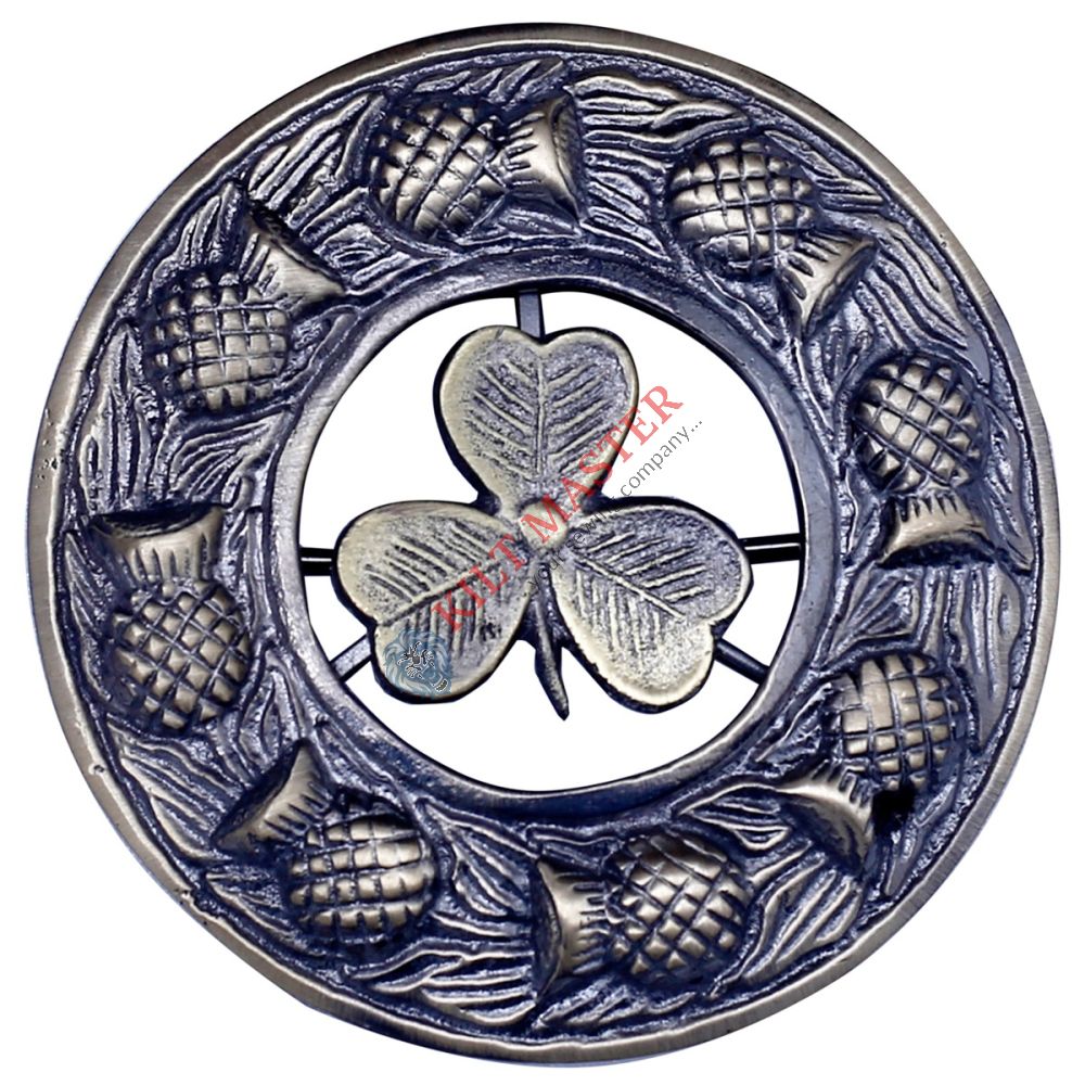 Add charm to your kilt with this Shamrock Badge Antique Kilt Fly Plaid Brooch. Crafted from durable pewter, it showcases a stunning shamrock design, symbolizing good luck and Irish heritage. The antique finish gives it a classic, timeless appeal. Ideal for securing your plaid or fly, this brooch is both functional and stylish. Perfect for weddings, parties, or Highland games, it’s a versatile accessory for kilt enthusiasts.