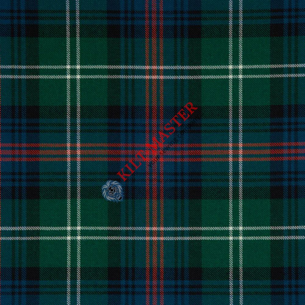 This kilt features a classic color palette of deep greens, rich blues, and earthy browns, with accents of red and yellow. The ancient tartan design is characterized by its intricate pattern of crisscrossing lines and squares, symbolizing the clan's history and connection to the Highlands.