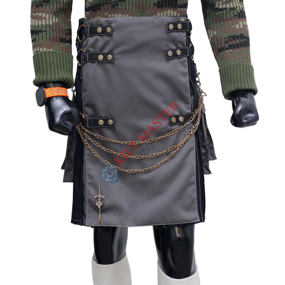 Absolutely. The black and grey kilt is designed as a work kilt that is both stylish and practical. Its durable fabric and multiple pockets make it easy to carry tools or personal items. The modern, rugged kilt is perfect for those who work outdoors or in jobs that require rugged clothing. It combines the look of a traditional kilt with the features of a tactical and utility dress. Its versatile style makes it suitable for daily work while keeping you comfortable and ready for any task. You can wear it confidently in various work environments, thanks to its durable materials and functional design.