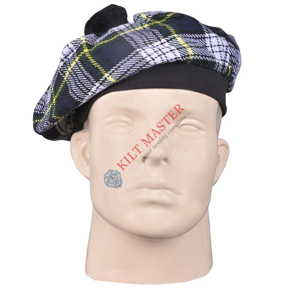 Material: Acrylic Wool Tartan: Gordon Dress Tartan Rib: Elastic Black Pompom Color: Black / Matching Lining: Cotton Size: Free / Adjustable Fit Unisex: Men, Women, Kids, LGBTQ