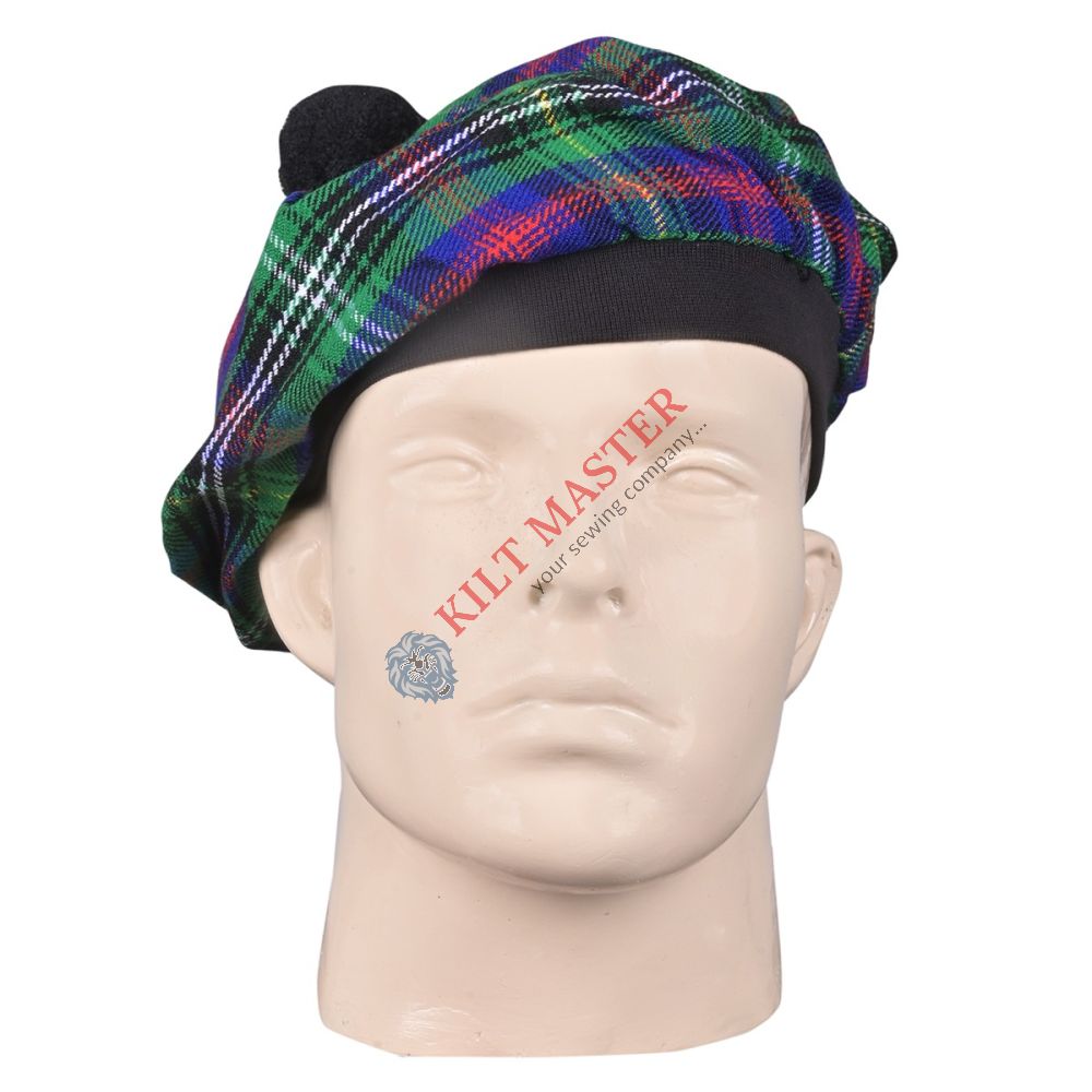 Material: Acrylic Wool Tartan: Wood Clan Tartan Rib: Elastic Black Pompom Color: Black / Matching Lining: Cotton Size: Free / Adjustable Fit Unisex: Men, Women, Kids, LGBTQ