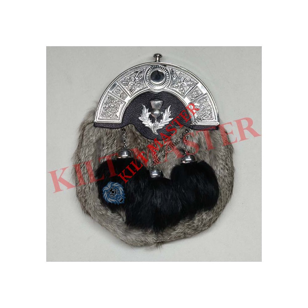 If you've been searching for an accessory that's distinct and fashionable, you'll love the Thistle Grey Rabbit Fur Sporran. It's elegant and traditional, and it provides the perfect finishing touch to your outfit. Dress up your kilt with this stunning sporran today!